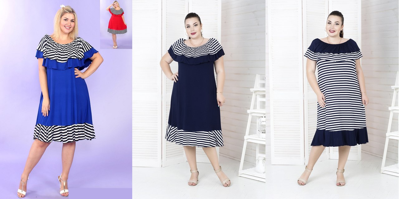 Летнее платье большого размера «Марсель-однотонная» Размеры: с 48 по 82! Ткань: вискоза х/б однотонная,отделка вискоза полоска. Цвета:электрик,красный,синий. ОПТ: Показать полностью…