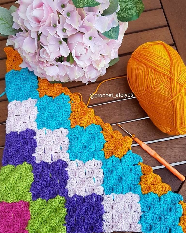 Очень симпатичный плед или подушку можно связать из остатков пряжи. Смотрите МК, забирайте схему, воплощайте в жизнь!