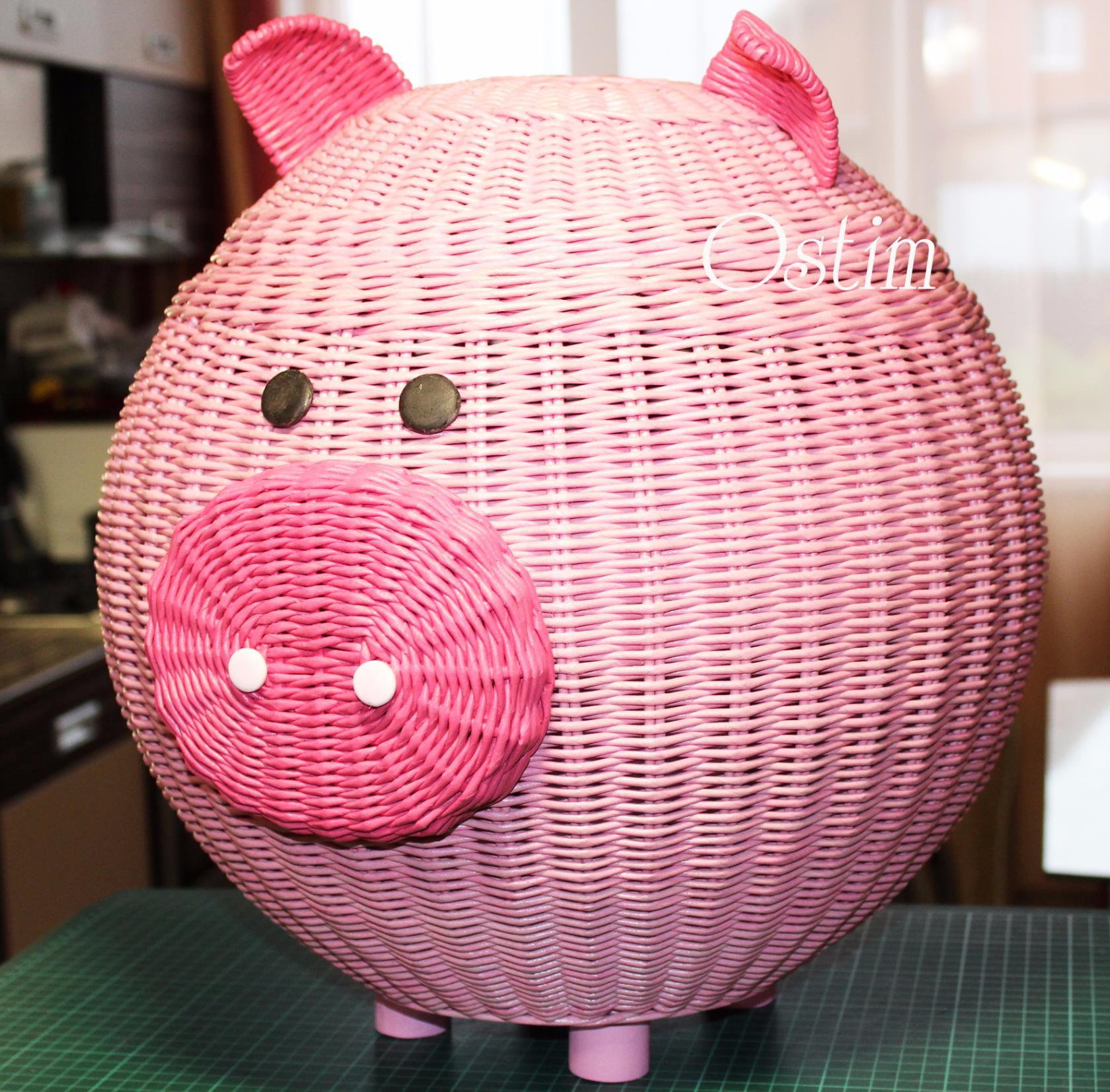 «Не мала баба клопоту, сплела порося!» Нет бы карликовую Мини-пиги. Дак нет же, на большую, просто огромную, замахнулась! (высота - 45 см, окружность 130 см). Но зато все-все игрушки, что есть в доме, уместятся. Эта розовая хрундя ждёт своего хозяина. #корзинадляванной #купитькорзину #плетениеизбумаги #плетенаякорзина#плетеныйкороб #Плетеныйящик #корзинадляхранения #корзинаручнойработы#корзинаизбумаги #basketshome #плетениеизгазет #искусственныйротанг