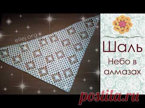 ♥ Узор крючком с паучками для шали "Небо в алмазах" • Мастер-класс и Схема вязания • ellej.org