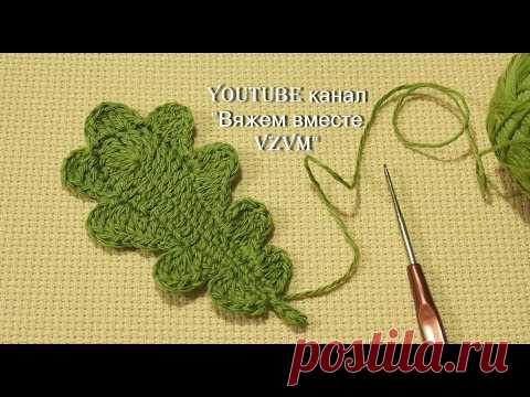 Как связать листик крючком Вязание по схеме дубового листочка Урок 87 leaf crochet