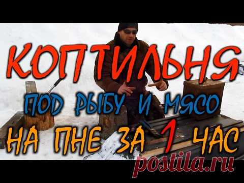 ИЗГОТОВЛЕНИЕ КОПТИЛЬНИ ДЛЯ РЫБЫ И МЯСА топором, ножом и ножницами, на пне за 1 час.