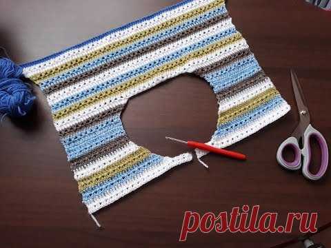 Жакет крючком (из остатков пряжи). Часть 3. Горловина полочек.