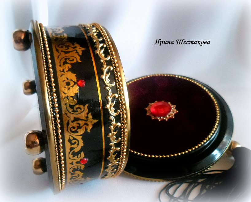 Шкатулочка «Тысяча и одна ночь». Декупаж, фурнипаж, стразы. Внутри обивка бордовым стрейч-бархатом. Кисть ручной работы, съемная