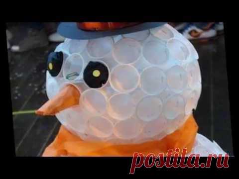 Снеговик из пластиковых стаканчиков Новогодние поделки