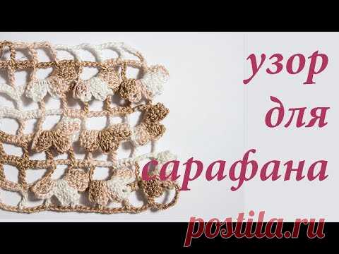 Узор крючком для сарафана или шапки \\ Сетчатый узор \\ Объемный цветок \\Вяжем по схемам
