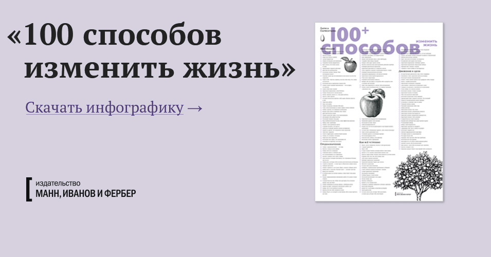 Впервые все 100 способов изменить жизнь — на одном плакате. Если вы открывали любую из частей дилогии «100 способов изменить жизнь», то знаете: на каждой странице — миллион цитат, перлов, мыслей, которые хочется выгравировать в камне и перечитывать каждый день. Но главная ценность — это сами 100 способов, одним своим названием способные запустить человека в космос. Так вот: мы собрали все способы в один плакат. Заглянул — и знаешь, что делать —