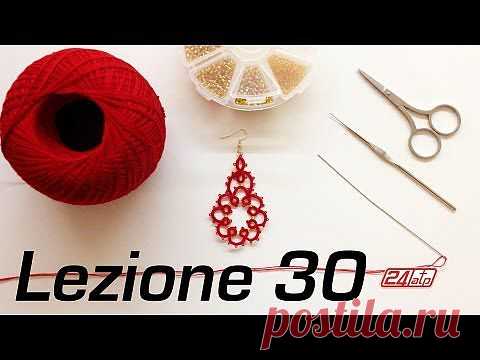 Chiacchierino Ad Ago - 30˚ Lezione Orecchino Con Perline Bijoux Tutorial Needle Tatting Stitch Count - YouTube