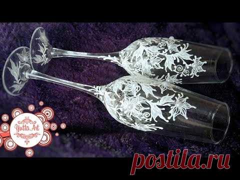 Изящные свадебные бокалы. Цветочный декор с имитацией жемчуга. Мастер класс от Ютты Арт.