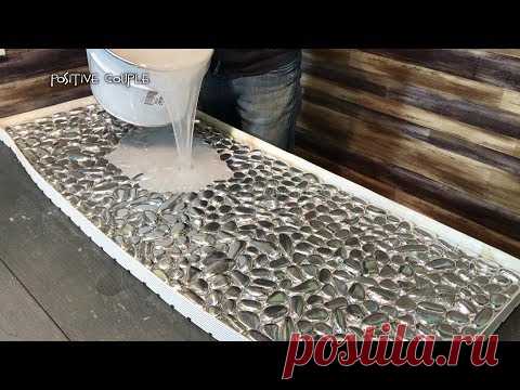(64) Quilted Chest of Drawers. Table Top made of Foil, Pebbles and Epoxy. Комод с Фольгой и Эпоксидкой. - YouTube
