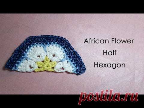 アフリカンフラワーモチーフの編み方(半分 1/2) * African Flower Half Hexagon Crochet Motif *