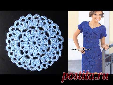 Платье из круглых мотивов крючком. МК.(1 часть из 2)