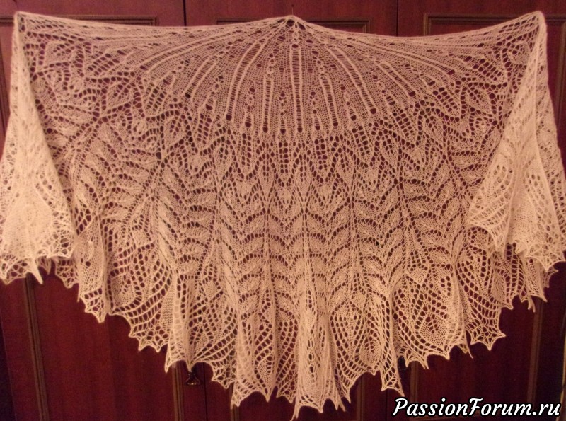 Шаль "Царица ночи" - запись пользователя falconet-n (Надежда) в сообществе Вязание спицами в категории Вязание спицами. Работы пользователей Моя новая шаль "Царица ночи" от дизайнера Аллы Борисовой, выполнена в рамках тестирования.Пряжа "Снежный ягненок", состав 60% шерсть ягнят, 20% верблюжья шерсть, 20% акрил, цвет белый. Спицы №3, по кайме №3,5. Размеры шали: по ленточке 212 см.