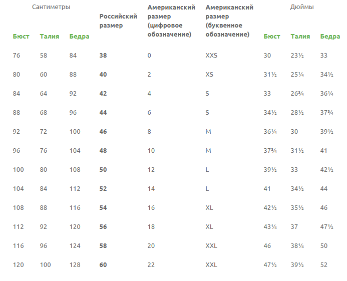 Таблицы размерности. Размерные сетки разных брендов - Shopfans : Shopfans