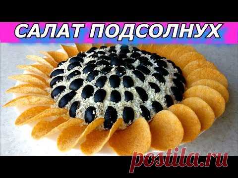 Гости Обалдеют! Салат на Новый Год Подсолнух! С Курицей, грибами, сыром, маслинами, чипсами