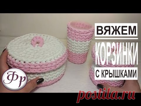 Корзинка из трикотажной пряжи любого размера. Как вязать крючком.