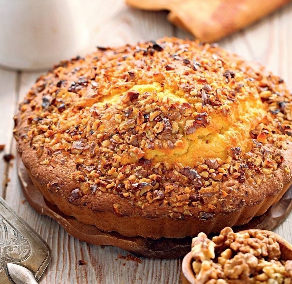 Кавказский ореховый пирог Ингредиенты: Орехи грецкие — 100-150 г Сметана жирная — 1 стак. Масло сливочное — 100 г Масло сливочное — для формы Яйцо крупное — 4 шт. Мука — 2 стак. Мука — для формы Сахар — 1 стак. Сода — 1 ч. л. Шафран молотый — 1 щепотка Соль — на кончике ножа Приготовление: 1. Заранее, за 6–8 часов, отделить белки от желтков, желтки посолить, накрыть пленкой и поставить в холодильник (это нужно, чтобы пирог был ярче по цвету). Белки держать в холодильни...