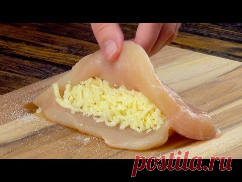 Наполняем куриные грудки сыром и закрываем. Так просто и вкусно!