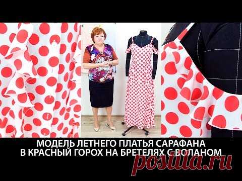 Модель летнего платья сарафана на пуговицах в красный горох на бретелях с воланом
