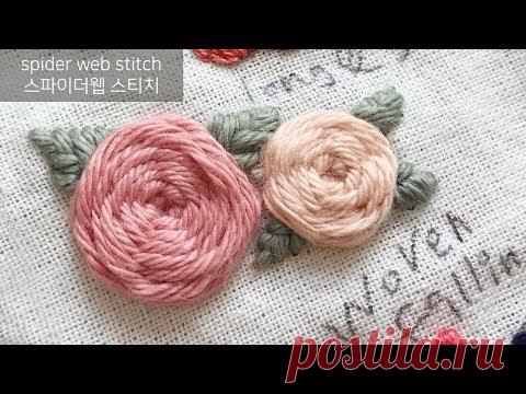 프랑스자수- 스파이더 웹 로즈 스티치를 하는 두가지 방법