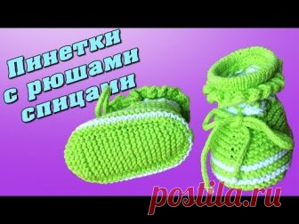 Пинетки с рюшами спицами | Booties with ruches knitting