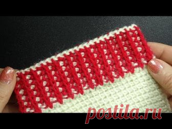 Имитация резинки тунисским крючком Tunisian crochet pattern 54