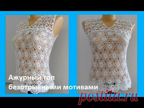 Ажурный топ безотрывными мотивами, вязание крючком,crochet motifs(В № 109)