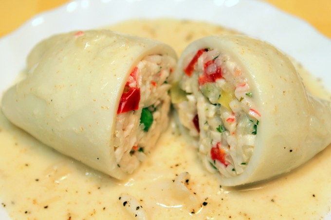 Фаршированные кальмары «Белоснежка» с рисом и крабовыми палочками – рецепт с фото, как приготовить на Вкусно Дома Фаршированные кальмары «Белоснежка». Готовим дома вкусные фаршированные кальмары «Белоснежка». Рецепт приготовления фаршированных кальмар с рисом и крабовыми палочками.
