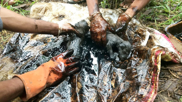 Душераздирающее зрелище: собака ощенилась на стройплощадке в луже смолы Собака ощенилась малышами рядом со строительной площадкой в городе Кейнджираппалли, Индия. И во время игр они оказались в западне.
