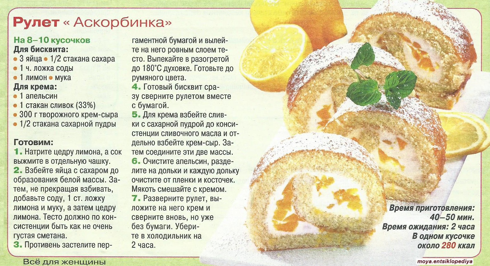Рулет "Аскорбинка" с лимоном и крем-сыром