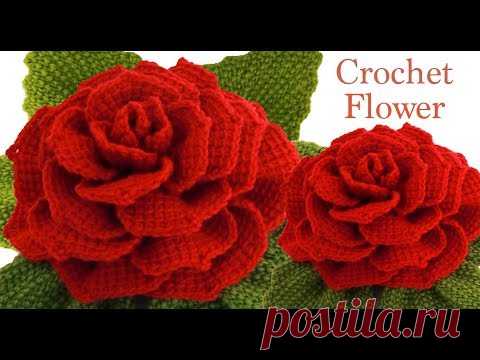 Como hacer flor rosa Gigante 3D con hojas a Crochet en punto tunecino tejido tallermanualperu