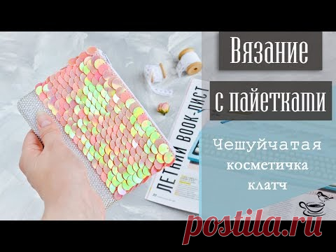 ВЯЗАНИЕ С ПАЙЕТКАМИ: Чешуйчатая Косметичка Клатч | CROCHET with paillettes TUTORIAL: Scaly handbag