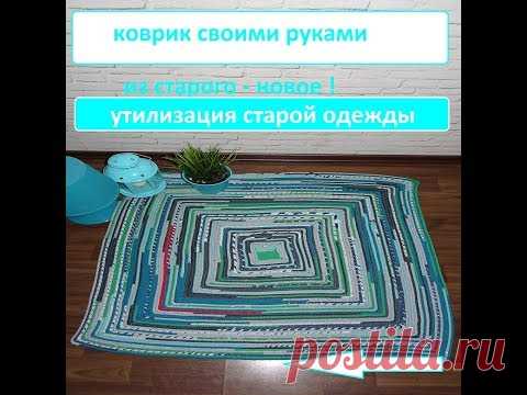 Коврик из обрезков / лоскутов. Утилизация старой одежды. Как сшить коврик.