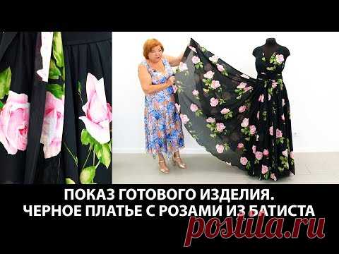 Модель длинного платья солнце из батиста Черное платье с розами с длинным поясом до пола