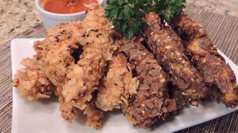 Куриное филе в кукурузных чипсах: пальчики оближешь