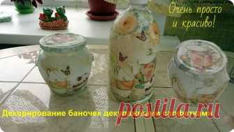 Декорирование пластиковых и стеклянных банок. Декупаж баночек. Приклеивание декупажных салфеток. Декупажными салфетками можно украсить любой предмет и создать оригинальный декор любого уголка в вашем доме. Не много фанта...