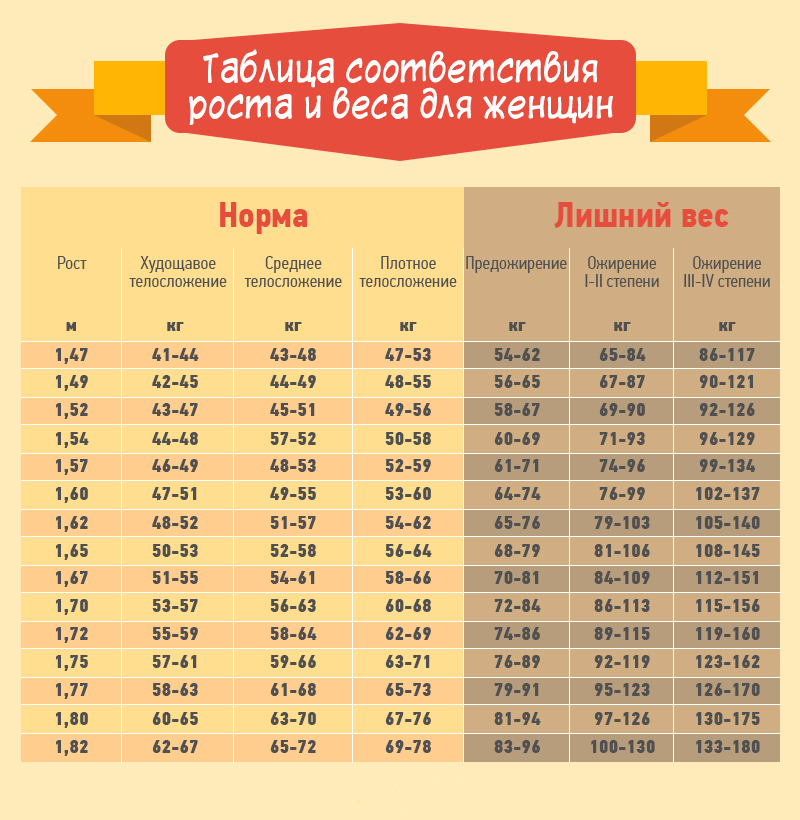 Таблица идеального соотношения вашего роста и веса | Душа девушки