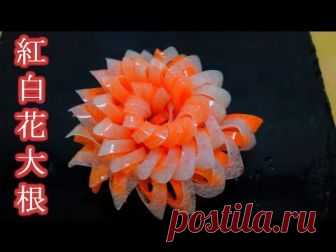 紅白花大根 桂剥き応用細工野菜その④ Japanese food technology in Japan