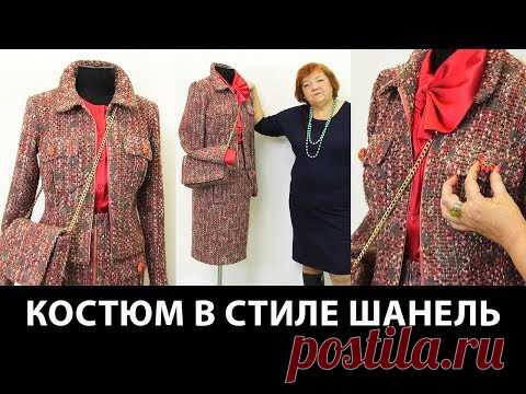 Костюм в стиле Шанель с шелковой блузкой и сумкой на цепочке. Жакет с клапанами и юбка на молнии