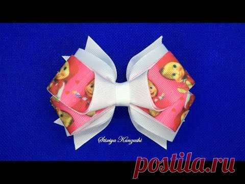 Украшение на заколку Канзаши / Бантик с Машей / Маша и Медведь