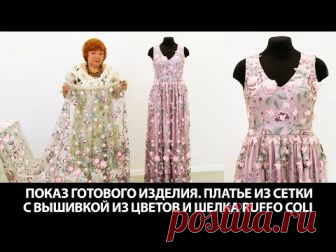 Открытое шелковое платье с обьемной вышивкой цветами отрезное по талии в перламутрово-розовом цвете