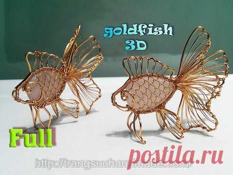3D Золотая рыбка кулон с большой розовый кварц без отверстий - полная версия ( медленный ) 372