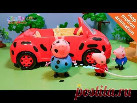 Свинка Пеппа Помогает Папе свину мыть Машину Мультик из Игрушек Веселые карусели - YouTube