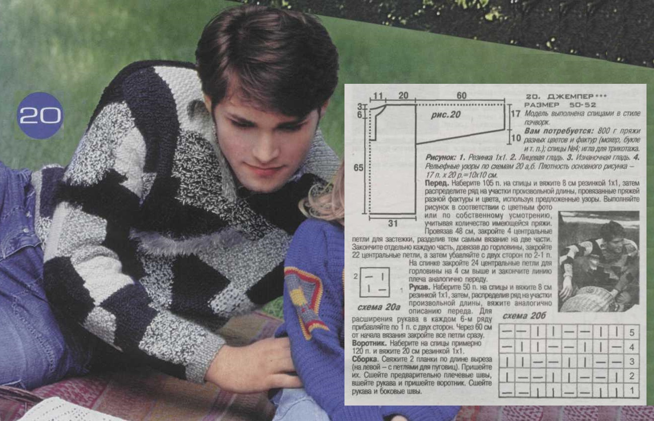 Мужской джемпер в стиле пэчворк спицами