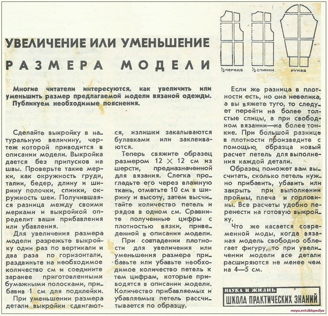 Как изменить размер модели вязаной одежды