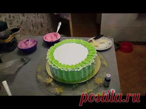 Бисквитный торт, украшен БЗК и бабочками из вафельной бумаги