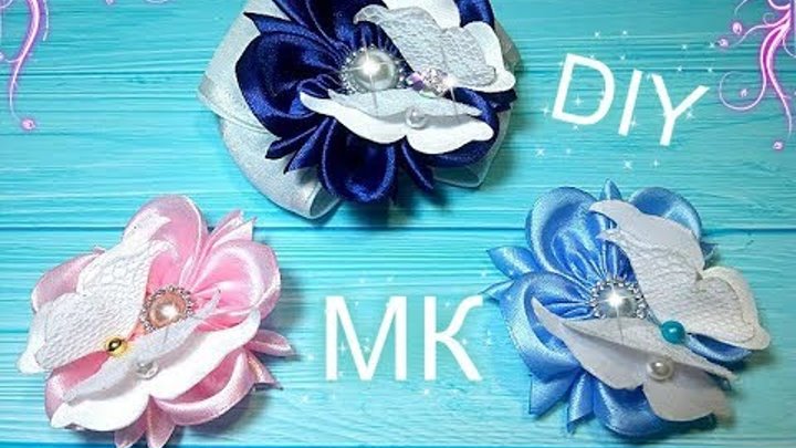 Бабочки 2D из атласных  лент с цветами канзаши, школьные бантики