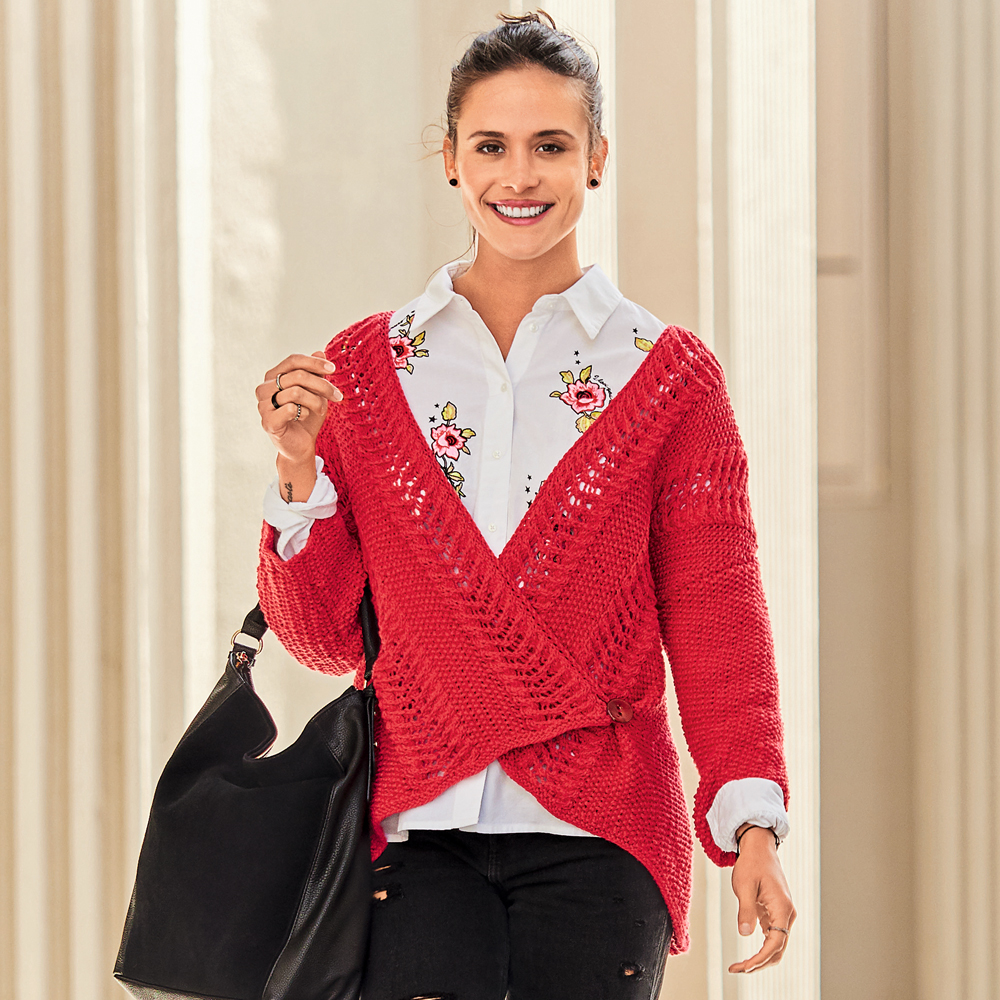 Асимметричный жакет с ажурным узором - схема вязания спицами. Вяжем Жакеты на Verena.ru