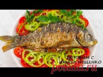 Карп фаршированный овощами, запеченный в духовке.