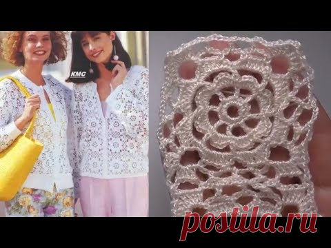 Вязаный квадрат крючком с цветком Кофта с квадратов